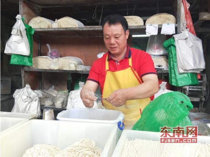 在石獅湖東菜市場,來自外省的周萬勇和家人共同經(jīng)營著一家面條批發(fā)店,每天凌晨一點起來制作面條,已經(jīng)堅持了10年,其熱情善良的性格得到整個菜市場攤主商戶的普遍認可。因周萬勇常年騎著摩托車給顧客送貨,又喜歡穿紅色上衣,大家都尊稱他摩托勇士、紅衣英雄。
