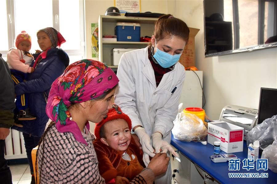 當(dāng)?shù)貎和诎⑻丶右览锎逍l(wèi)生室接受體檢(3月20日攝)。