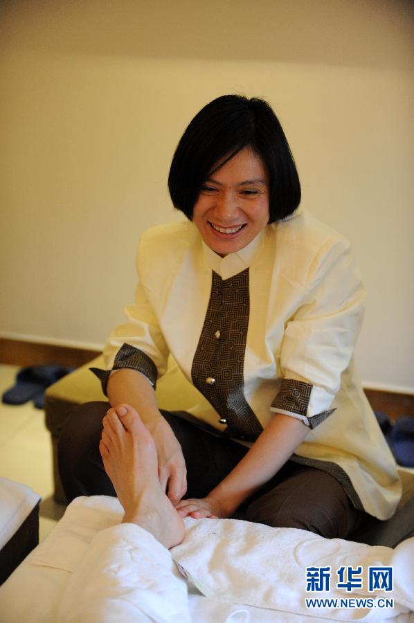1月12日,劉麗在為客人做足療。近日,被譽為“最美洗腳妹”的劉麗回家鄉(xiāng)安徽創(chuàng)業(yè),在合肥開辦一家足浴城。劉麗說,回家鄉(xiāng)開足浴城,一是為洗腳妹“正名”,為員工們提供一個有保障的工作;二是做公益,今后足浴城25%的利潤將捐入慈善會;三是感恩,足浴城采取低定價,要讓更多的普通百姓消費得起。劉麗出生于安徽潁上縣農村一個貧困家庭,只念了5年書便因貧輟學。為減輕父母的負擔,身為長女的劉麗外出務工供弟妹上學。1995年起,劉麗先后到湖北、江蘇等地打工。后來,劉麗在廈門找到一份“洗腳工”工作,家庭經濟狀況在她的支持下逐漸好轉。除補貼家用外,劉麗用做洗腳妹攢下的辛苦錢資助貧困學生,也由此被網友稱為“最美洗腳妹”。新華社發(fā)(楊曉原 攝)