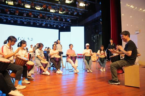 小玫瑰計(jì)劃聯(lián)合福建師大功夫樂(lè)團(tuán),30日下午在客家大劇院,功夫樂(lè)團(tuán)的首席藝術(shù)指導(dǎo)李林老師和他的團(tuán)隊(duì),帶領(lǐng)小玫瑰們認(rèn)識(shí)不同的打擊樂(lè)樂(lè)器,并逐一給大家做了示范,李林老師還親自教授小玫瑰們進(jìn)行了非洲鼓的練習(xí),帶著小玫瑰們?nèi)抡J(rèn)知了打擊樂(lè)的魅力。參與到打擊樂(lè)學(xué)習(xí)中的還有6名分別代表長(zhǎng)汀一中、長(zhǎng)汀二中、新橋中學(xué)、河田中學(xué)、龍宇中學(xué)、濯田中學(xué)的音樂(lè)老師,為了讓更多孩子體會(huì)打擊樂(lè)的美妙,6名音樂(lè)老師代表各自的學(xué)校接受了福建師大功夫樂(lè)團(tuán)贈(zèng)送的共十二面非洲鼓。