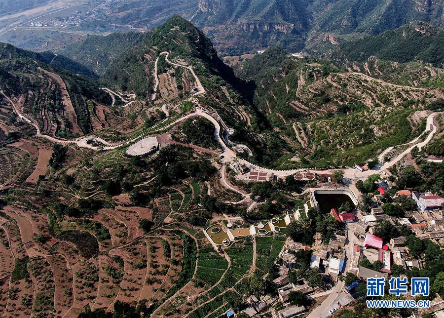 這是7月3日無(wú)人機(jī)拍攝的盤(pán)龍山村及王生有帶領(lǐng)村民硬化的下山道路。