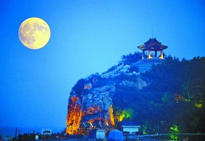 中秋佳節(jié),眾多市民與游客來到北戴河海邊欣賞超級(jí)月亮。