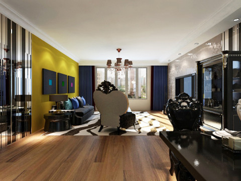 客餐廳設(shè)計(jì): 客廳以后現(xiàn)代風(fēng)格為主,黑白鏡面的設(shè)計(jì)以及黃色背景墻成為空間亮點(diǎn)。采用反光的壁紙和鏡面提升整個(gè)空間的現(xiàn)代感,亮色乳膠漆的運(yùn)用點(diǎn)亮了整個(gè)空間。