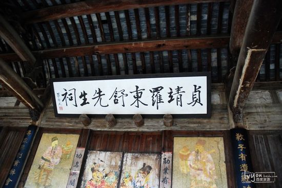羅東舒祠是前羅十三世祖羅東舒的后裔為祀羅東舒所建。羅東舒名榮祖,字仁甫,好東舒,是宋末元初的著名學(xué)者.據(jù)前羅族宗譜記載:“自小穎異,以才俊稱,文章鳴世,長隱居,義不仕元,惟耕讀是業(yè),署所居為樂堂, 式甘心泉石,以一善字持身,其教子孫,欲其家傳世守,寶而勿失,修族譜,收族屬,凡先世 墓逐一稽考,后代親疏續(xù)其支派宗族,皆德其仁......有黃魯直之才,歐陽永叔之賢。元皇慶 丑(公元1313年)謝廷蘭稱其與淵明同調(diào),登嘯自高,良有以也!绷_氏后裔對他如孔子,羅東舒祠中的甬道、左右丹墀、兩廂、露臺(拜臺),加上精刻的青石欄板及后寢十一開間等,均為民間祠堂所罕有。