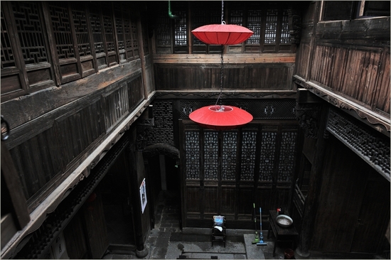 明代民宅,兩進(jìn)兩間三層樓。98年已由國家買下維修。大門門罩磚雕,形制古樸門墻有單披屋面,靠異形丁拱承托平盤木方,木方上置圓形雕花櫨斗,斗上又斜華拱,斜華拱承托屋子面,展品形丁頭拱和圓形櫨斗拱在徽州極為罕見。據(jù)說它保持了宋代,元代的建筑風(fēng)格尤為珍貴。該宅兩進(jìn)三層,氣勢恢宏,在徽州極為少見,前進(jìn)為會客廳,后進(jìn)為生活區(qū),從這幢房子可以看出徽州人聚族而居及徽派民宅的風(fēng)格。靠天井采光,有“四水歸堂,肥水不流外人田”之說,四面都是高墻,叫峰火墻,有窗戶,但很少、也很小,是磚的,叫防火、防盜窗。在本地流傳著一首民謠:“前世不修,生在徽州,十三、四歲往外一丟”。也就是說當(dāng)時在徽州這一帶,男的十三、四歲就要外出學(xué)經(jīng)商,或讀書入仕,家里盡是婦儒、小孩,因此,徽州人造房子對防火、防盜等設(shè)施考慮的特別周到。