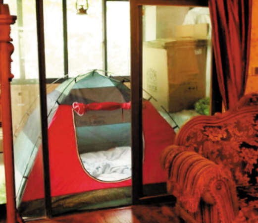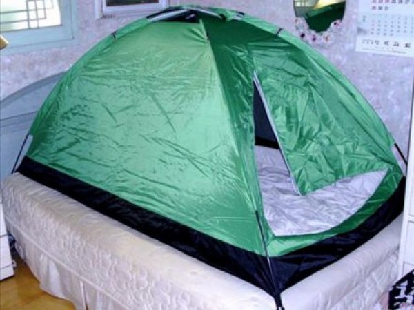 <p>甚至還有一些人把帳篷放在床上(這樣就更暖和了)。</p>