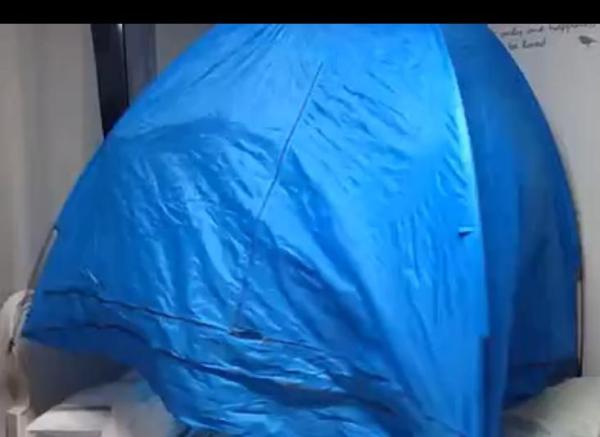 <p>帳篷這個(gè)神器就這樣出現(xiàn)了,很多家庭睡在室內(nèi)帳篷里保暖。</p>
