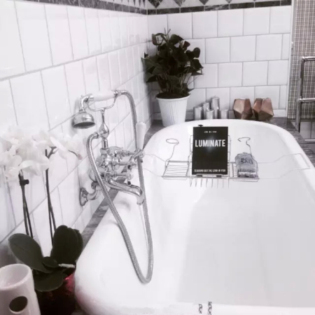 <p>不大的浴缸也可以很有情調(diào)。側(cè)出水,復(fù)古瓷磚,復(fù)古龍頭,浴缸邊擺放燭臺(tái)、植物。</p>