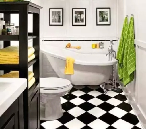 <p>黑白空間未免單調(diào),用彩色浴巾增添亮點(diǎn)。</p>