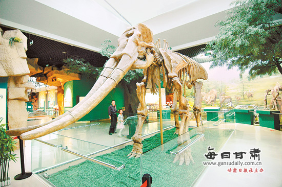 甘肅省博物館展出的黃河象化石復(fù)制品。 王文元攝