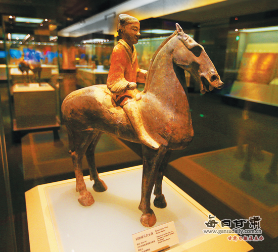 西漢彩繪騎馬武士俑。(陜西博物館)