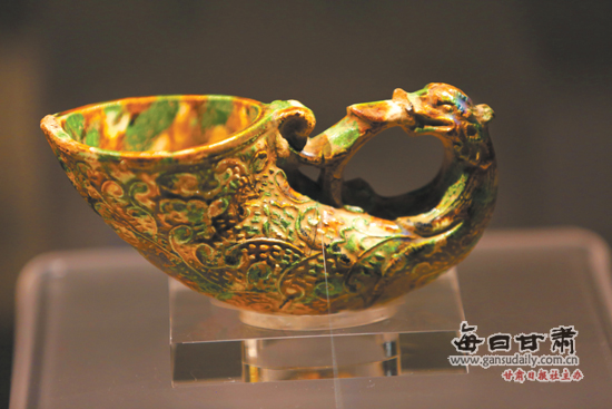 關(guān)鍵詞:文博會(huì),敦煌,絲路,絲綢之路,瑰寶,麥積山石窟,新疆維吾爾自治區(qū)博物館,人物俑,舞獅俑,三彩牛角形孔雀杯