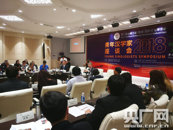 央廣網(wǎng)敦煌9月27日消息(記者張喬)26日下午,第三屆絲綢之路(敦煌)國際文化博覽會(huì)青年漢學(xué)家座談會(huì)在敦煌國際會(huì)展中心舉辦。來自埃及、俄羅斯、印度等22個(gè)國家的30位青年漢學(xué)家與敦煌研究院副院長(zhǎng)趙聲良、敦煌學(xué)信息中心主任張?jiān)值葘<覍W(xué)者就“一帶一路”人文交流互鑒的意義與前景、絲路精神的當(dāng)代價(jià)值以及對(duì)絲路文化、敦煌文化的理解展開座談與交流。