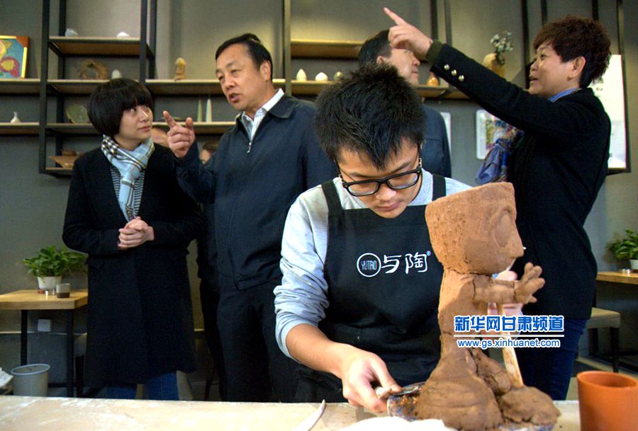 央廣網(wǎng)蘭州11月3日消息 10月27日,在蘭州市文化創(chuàng)意產(chǎn)業(yè)園內(nèi),參加甘肅省服務(wù)小微企業(yè)發(fā)展現(xiàn)場會的代表在參觀陶藝制作。隨著甘肅省華夏文明傳承創(chuàng)新區(qū)建設(shè)的推進,甘肅省非公有制經(jīng)濟發(fā)展協(xié)調(diào)推進領(lǐng)導(dǎo)小組加大對包括文化在內(nèi)的各類小微企業(yè)的服務(wù)力度。2014年上半年,蘭州市的文化產(chǎn)業(yè)實現(xiàn)增加值23.35億元,文化產(chǎn)業(yè)機構(gòu)已增加至2826家,從業(yè)人員近4.5萬人,文化產(chǎn)業(yè)正逐步成為拉動蘭州市經(jīng)濟發(fā)展的新引擎。新華社記者 郭剛 攝