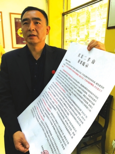 早晨9點開始,檢查組在對甘南路的沿街中介公司進行檢查后,特意到背街小巷內(nèi)尋找房產(chǎn)中介突擊檢查。早晨9點50分,在悅安房屋甘南路店,檢查組發(fā)現(xiàn)店內(nèi)的房源明碼標價牌制作不規(guī)范。檢查組中物價部門負責人提醒購房者,正規(guī)的“二手房商品房銷售明碼標價牌”應(yīng)包括樓盤名稱、坐落位置、銷售總價、樓號、樓層、朝向、套型、建筑面積、建筑結(jié)構(gòu)、產(chǎn)權(quán)情況(產(chǎn)權(quán)、合同)、裝修(毛坯、簡裝、精裝)、使用年限、中介服務(wù)費、代收代辦收費項目、收費標準、收費依據(jù)、銷售單位負責人簽章、經(jīng)辦人簽章,以及物價局監(jiān)督舉報電話12358。隨后,檢查組中房產(chǎn)交易中心責任人發(fā)現(xiàn)該中介還違規(guī)代理并公布了尚未取得房產(chǎn)證的房源信息,“如果明碼標價牌制作不規(guī)范,購房者對二手房買賣的專業(yè)性又不強,就很難一眼發(fā)現(xiàn)這種‘無證房’。”