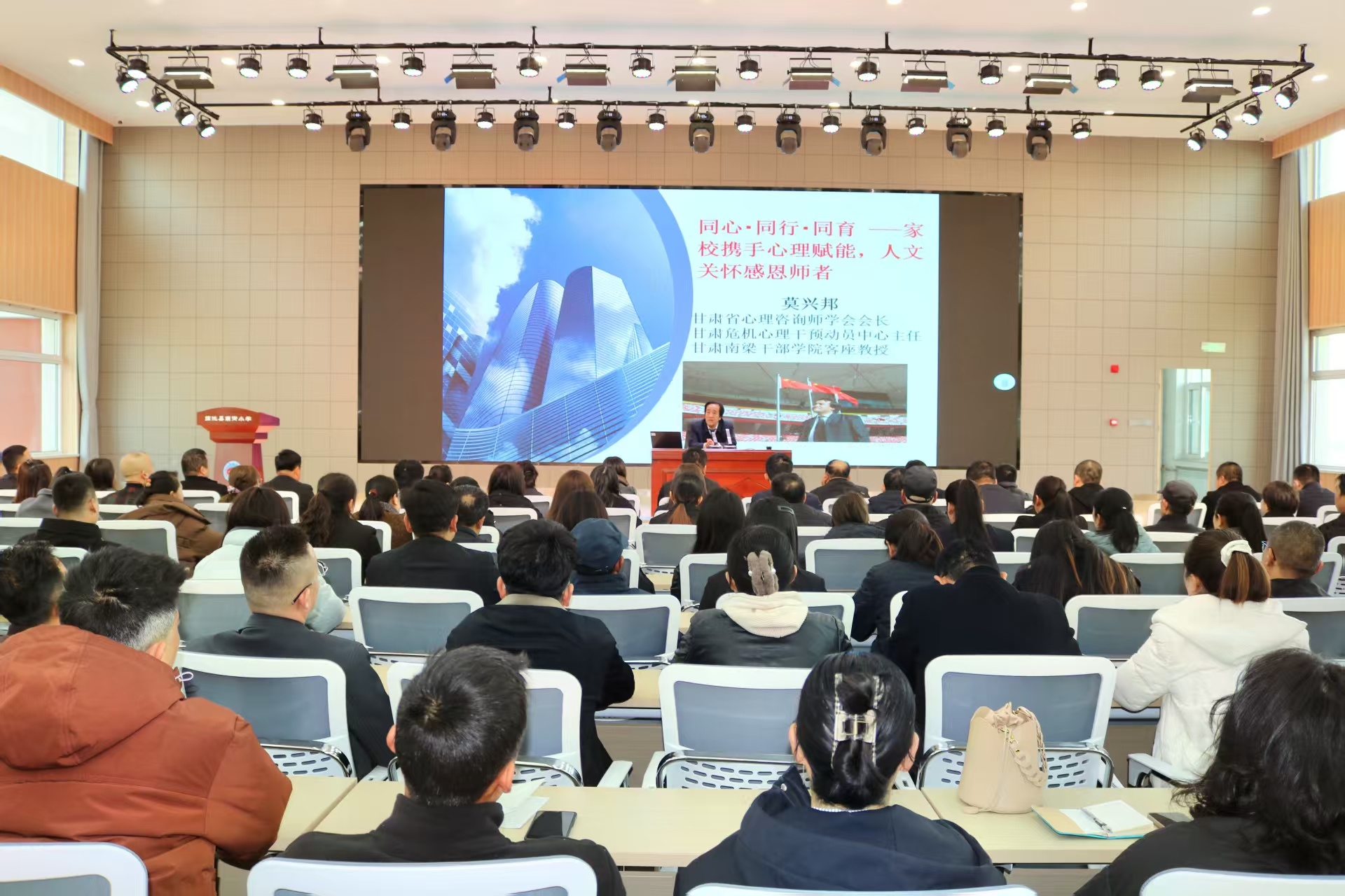 為進一步強化教師教學素養(yǎng)、提升家庭教育水平,深化家校協(xié)同育人機制,幫助家長樹立科學育兒觀念,2月28日上午,甘肅省定西市臨洮縣南街小學特邀甘肅省心理咨詢師學會會長莫興邦教授,開展《同心·同行·同育——家校攜手心理賦能,人文關(guān)懷感恩師者》家長能力提升專題講座。學校300余名家長代表與全體教師齊聚報告廳,共赴一場兼具理論深度與實踐價值的教育盛宴,共探新時代育人之道。
