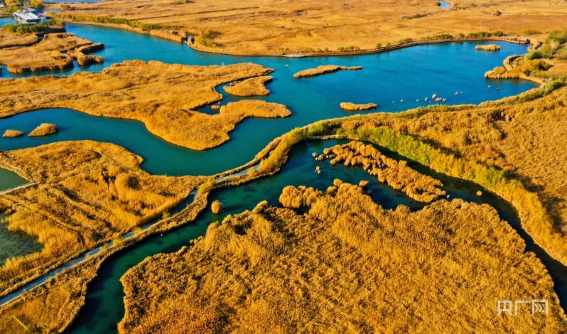 初冬時(shí)節(jié),甘肅省張掖市黑河濕地國家級(jí)自然保護(hù)區(qū)內(nèi),成片的蘆葦、蒲草變成了金黃色,與環(huán)繞其中的碧水相映成趣。清風(fēng)拂過,蘆葦搖曳、碧波蕩漾、鳥鳴啾啾,整個(gè)濕地宛如一幅精美絕倫的油畫,令人心曠神怡。
