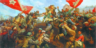 圖為表現(xiàn)紅軍三大主力會(huì)寧會(huì)師的油畫,作者蔡亮。