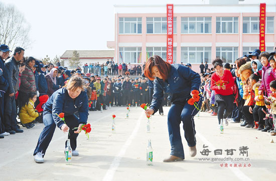 中廣網(wǎng)蘭州2月20日消息 2月17日,在榆中縣夏官營鎮(zhèn)夏官營村文體活動廣場上,一場別開生面的農(nóng)民自辦趣味運(yùn)動會正在熱熱鬧鬧地舉行。乒乓球顛球跑、摸石頭過河以及插花接力賽等體育項(xiàng)目,吸引了近600多名村民前來參與。本報(bào)記者朱宇鯤 通訊員高飛