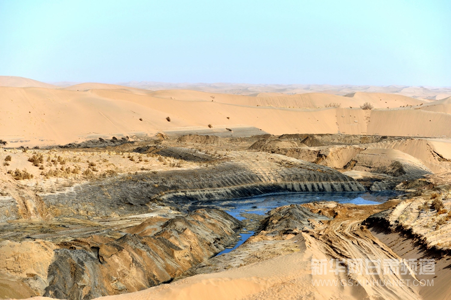 這是甘肅武威境內騰格里沙漠腹地受污染的區(qū)域(3月21日攝)。