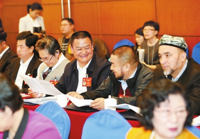 出席全國政協(xié)十二屆五次會議的住甘全國政協(xié)委員參加小組討論。本報記者 高檣