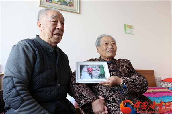 85歲的馮貴海老人和老伴向記者展示結(jié)婚照 “我今年85歲,老伴84歲,都過(guò)了大半輩子,沒(méi)想到今年的七夕節(jié),這兒的工作人員給我倆補(bǔ)拍了結(jié)婚照,我們都很高興。”12月7日,記者來(lái)到蘭州市安寧區(qū)孝慈苑養(yǎng)老服務(wù)中心,今年85歲的馮貴海老人和老伴拿出結(jié)婚照說(shuō)道。 馮貴海老人告訴記者,他來(lái)養(yǎng)老院一年多時(shí)間胖了十多斤,他笑著說(shuō):“在這兒吃的營(yíng)養(yǎng)餐搭配合理,最近我控制飯量加強(qiáng)活動(dòng),準(zhǔn)備減肥呢。”老伴兒徐文英在一旁說(shuō):“住在這兒我心情特別好,也不孤單。每天和這幫老伙伴說(shuō)說(shuō)笑笑,感覺(jué)很幸福。而且兒子媳婦每周來(lái)看我們,也很孝順! -