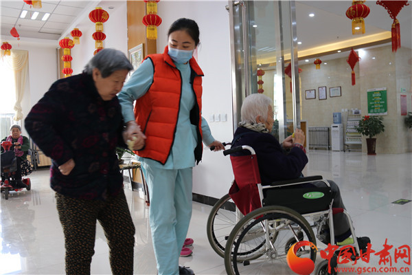 21歲的護(hù)理員王宮眠幫助兩位老人回房間休息 21歲的護(hù)理員王宮眠是平?jīng)鲮o寧縣人,在石家莊人民醫(yī)專學(xué)校高級(jí)護(hù)理專業(yè)畢業(yè)后來(lái)到這里工作。她曾獲得過(guò)“河北省護(hù)理技能大賽優(yōu)秀獎(jiǎng)”,在這兒她負(fù)責(zé)老人的日常起居,得到了很多老人的夸獎(jiǎng)!翱粗先嗽谖覀兊恼疹櫹拢眢w變好,心情舒暢,我心里很欣慰,覺(jué)得這份工作很有意義!蓖鯇m眠說(shuō)。 像王宮眠這樣從全國(guó)各地專業(yè)護(hù)理專業(yè)畢業(yè)的學(xué)生來(lái)這里工作的還有很多。他們?cè)谶@兒長(zhǎng)期接受專業(yè)培訓(xùn),提高自身的服務(wù)技能。12月,他們正在進(jìn)行技能大比武,包括心肺復(fù)蘇、輪椅移位等業(yè)務(wù)內(nèi)容。 -