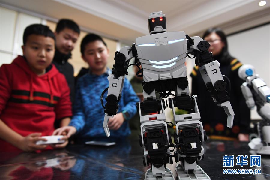 1月27日,孩子們在“寒假快樂課堂”老師的指導(dǎo)下操控機(jī)器人。新華社記者 陳斌 攝 -