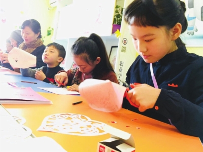 狗年春節(jié)將至,2月4日,不少市民帶著孩子走進甘肅經(jīng)緯文化藝術專修學院的剪紙小課堂,學習剪紙藝術,感受濃濃的年味,體會中國傳統(tǒng)文化的魅力。