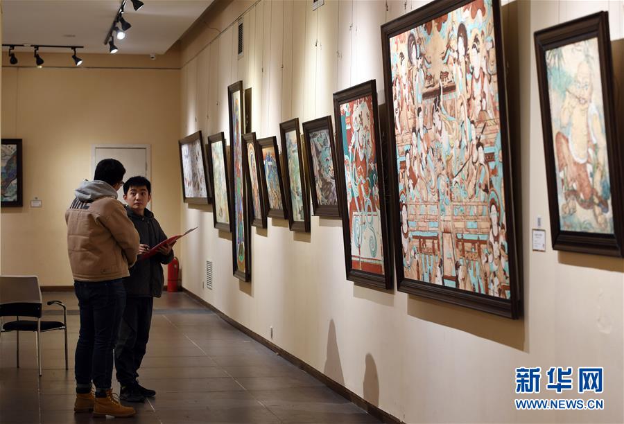 1月6日,在甘肅省藝術(shù)館,觀眾欣賞俄羅斯畫家畫敦煌系列油畫作品。
