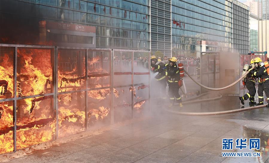 11月7日,在蘭州舉辦的“119”消防宣傳月啟動儀式上,消防人員在進(jìn)行縱深滅火演示。