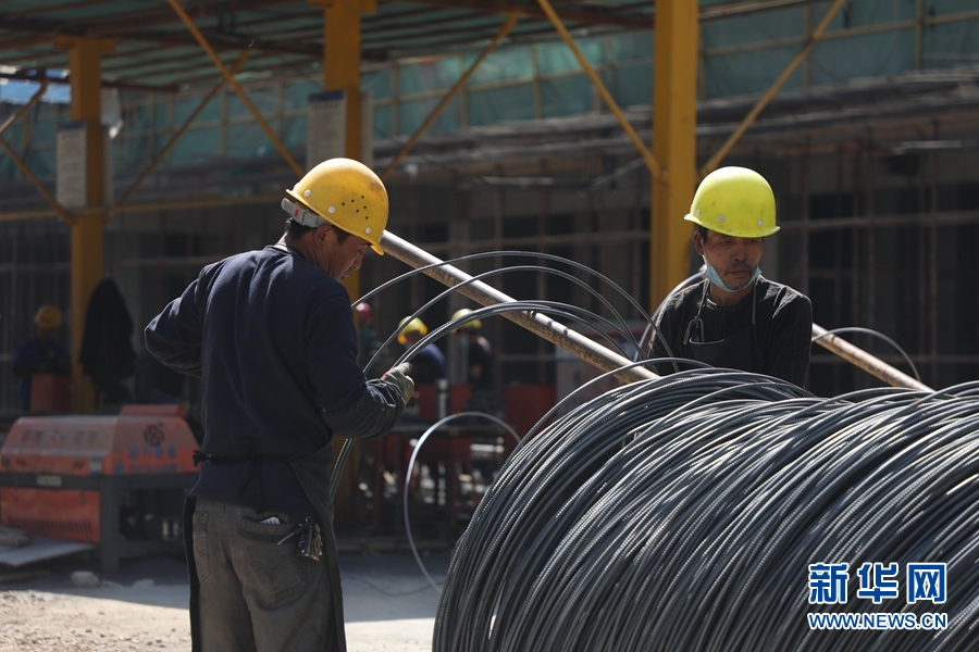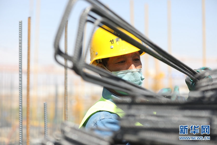 蘭州新區(qū)瑞嶺錦繡家園項(xiàng)目內(nèi)工人在施工。新華網(wǎng)發(fā)(童張偉 攝)