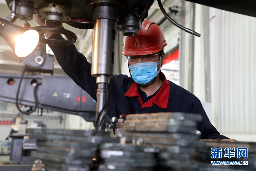 蘭州新區(qū)甘肅建投重工科技有限公司內(nèi)工人在工作。新華網(wǎng)(王生元 攝)