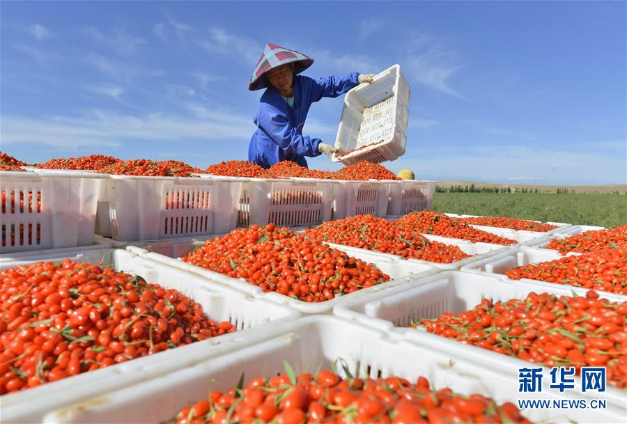 在位于河西走廊的甘肅省張掖市高臺縣,現(xiàn)在正是枸杞成熟的季節(jié),農民們忙著采摘成熟的枸杞,進行晾曬加工。近年來,高臺縣在戈壁荒灘等非耕地上發(fā)展特色林果產業(yè),取得良好經濟和生態(tài)效益。目前,全縣引進5家企業(yè)在戈壁灘種植枸杞面積達2.2萬畝,產品遠銷國內外市場。