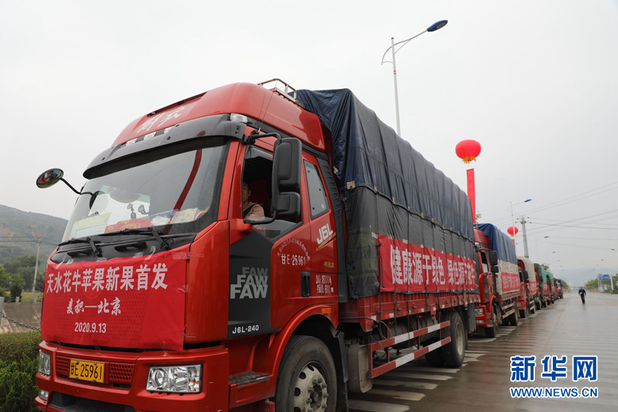 9月13日,天水花牛蘋果新果首發(fā)至北京、武漢等地。新華網(wǎng)(劉欣瑜 攝)