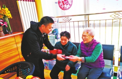 養(yǎng)老服務(wù)中心為老人送去新年禮物。