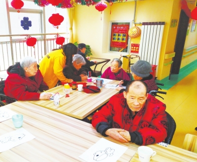 養(yǎng)老服務(wù)中心通過讓老人學(xué)習(xí)繪畫,鍛煉大腦。