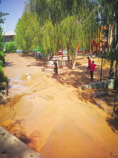 7月22日晚至23日,黃河上游至蘭州區(qū)間發(fā)生強(qiáng)降雨天氣,暴雨導(dǎo)致黃河水位急速上漲,蘭州中山橋下黃河水流量達(dá)3550立方米/秒,南濱河路人行步道、水車博覽園、馬灘濕地公園、安寧銀灘濕地公園、灘尖子濕地公園、龍?jiān)、音樂噴泉、馬拉松公園、百合公園等地勢低洼地帶均被淹沒。水位下降以后致使公園綠地、人行步道、上水泵房、音樂噴泉等地泥沙淤積,多處水泵、配電柜、音箱功放等設(shè)備也因進(jìn)水損壞無法正常使用。