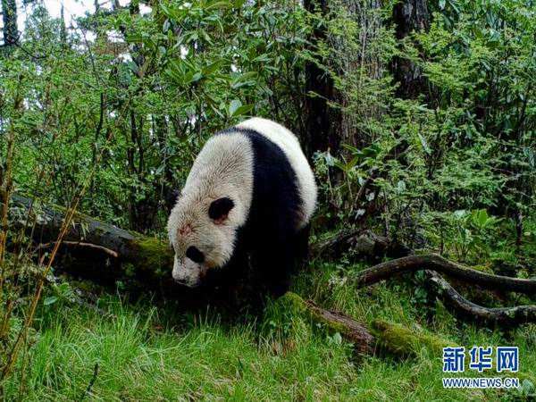這是甘肅白水江國家級自然保護區(qū)內(nèi)安放的紅外相機拍攝到的野生大熊貓(6月2日攝)。新華社記者 陳斌 攝
