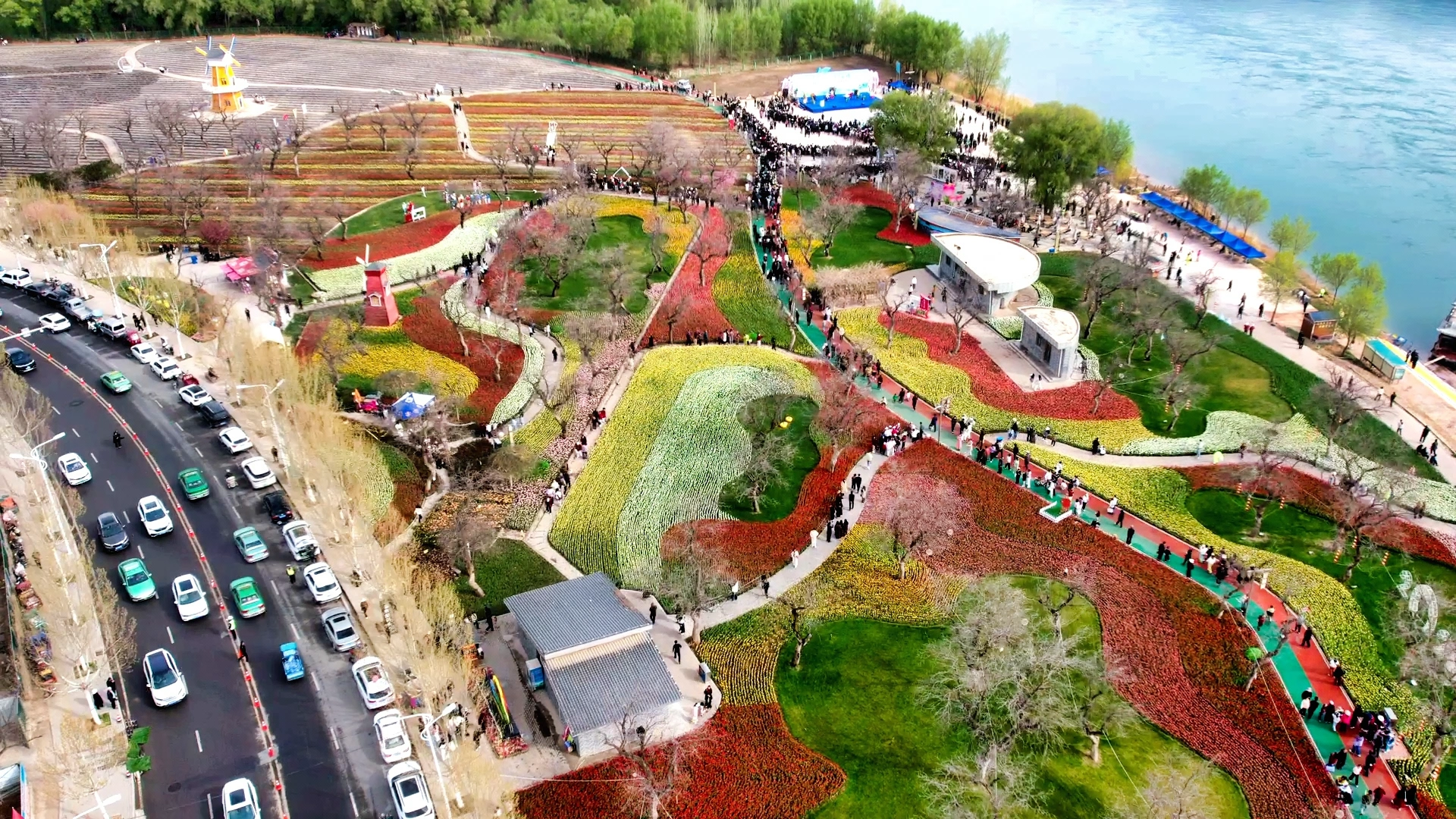 永靖縣黃河花堤郁金香公園內(nèi)54萬株郁金香進(jìn)入盛花期(永靖縣融媒體中心供圖)