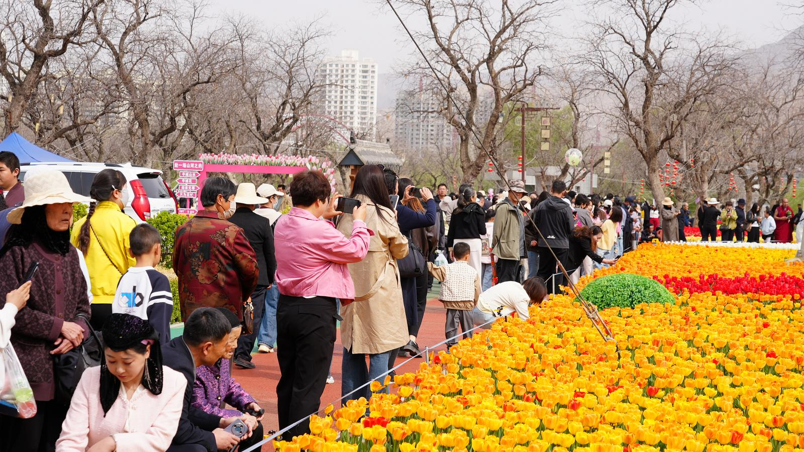 游客王瑛表示:“我是從蘭州市來的,今天郁金香我是第一次來看它,別的花我一年四季都來著呢,今年的郁金香開得特別特別好,我一定要把我的團(tuán)隊(duì)和姐妹們叫上,一起欣賞今年的美景!
