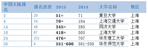 表二:《2015QS世界大學(xué)排名》,中國(guó)大陸30所世界一流大學(xué)上榜學(xué)校(上海6所)