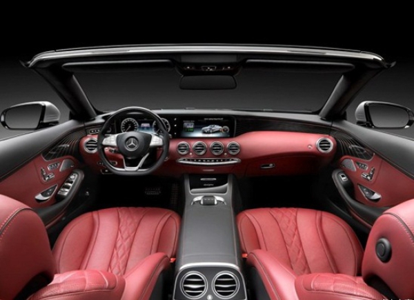 內(nèi)飾方面,奔馳全新S級敞篷版采用紅色和深色相間的內(nèi)飾配色,內(nèi)飾布局和全新奔馳S級Coupe基本相同,配備有多功能方向盤、液晶儀表盤、大尺寸中控臺顯示屏等,另外,車內(nèi)大量使用了銀色金屬裝飾條營造出豪華感。