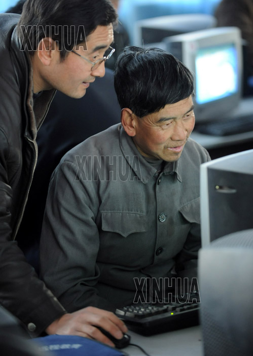 甘肅省成縣的一位農(nóng)民正在老師的輔導(dǎo)下學(xué)習(xí)電腦知識(2月29日攝)。 甘肅省成縣利用春耕時節(jié)舉辦農(nóng)村現(xiàn)代遠(yuǎn)程教育培訓(xùn)班,全縣終端接收站的76名管理人員接受了計算機基礎(chǔ)知識、辦公軟件的使用、現(xiàn)代遠(yuǎn)程教育基礎(chǔ)設(shè)施維護等方面的培訓(xùn),以滿足當(dāng)?shù)剞r(nóng)村信息化的需求。張錳 攝
