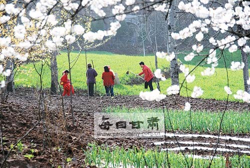 3月20日,一場(chǎng)春雨后,成縣小川鎮(zhèn)一戶農(nóng)家的瞬間定格,濃濃的春意把田野渲染得如詩(shī)如畫。 周者軍 攝