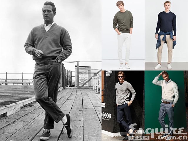 做為20世紀(jì)最后的偉大電影明星之一,Paul Newman用他英俊的外表和不可抵擋時(shí)尚品味征服了無(wú)數(shù)叛逆青年。雖然襯衫×毛衣×卡其褲的組合現(xiàn)在看起來(lái)并無(wú)多大新意,但適當(dāng)?shù)脑趩纹飞贤娉龈,或者在配飾上有些突破就是干凈清爽的都?huì)男子。