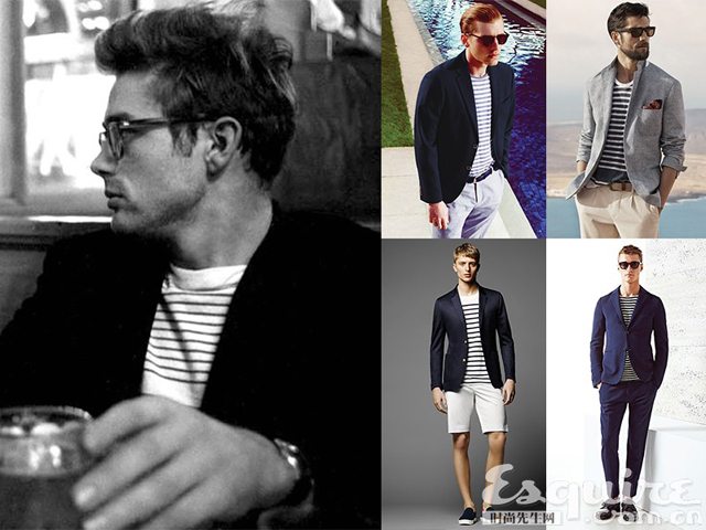 James Dean梳著機(jī)車(chē)頭、一副眉頭深鎖的憂(yōu)郁反叛形象,成為許多人記憶中的經(jīng)典,然而個(gè)人更愛(ài)他文藝頹廢的造型。男人就要簡(jiǎn)約和精致并存,條紋衫可以說(shuō)是衣櫥里最不可或缺的東西,它是一年四季的好品味基礎(chǔ),是法式文藝情懷,是設(shè)計(jì)師們一季又一季重新設(shè)計(jì)的熱情。
