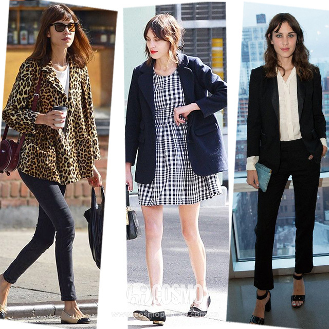 鐘小姐的西裝搭配就比較偏復(fù)古味道,比如和格子連衣裙搭配,她還會選擇比較大膽的豹紋西裝,效果也是很驚艷,不過這種款式和花色特別的西裝雖然可以嘗試,但是一定要選擇適合自己風(fēng)格的才可以。