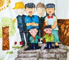 而那之后,在媽媽的鼓勵(lì)之下,畫全家福竟成了每年春節(jié)的一個(gè)固定節(jié)目。和照相館里那些千篇一律的全家福不同,隨著永軍的繪畫技巧在不斷提高,以及對(duì)家和愛(ài)的理解的加深,永軍的畫里加入了很多有趣的創(chuàng)意和可愛(ài)的奇思妙想。弟弟曾經(jīng)不止一次驕傲地說(shuō),哥哥畫的全家福,比照相館里的好一萬(wàn)倍。永軍筆下的全家福里,記錄著生活的喜悅:兄弟倆都考了雙百,地里的莊稼大豐收,家里買了大電視,自己考上了大學(xué)、結(jié)婚生子……