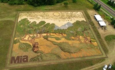 將名畫制作成蛋糕、比薩?日前,藝術(shù)家們又有了新的設(shè)計(jì)。據(jù)外媒報(bào)道,64歲的藝術(shù)家斯坦在美國(guó)明尼蘇達(dá)州以大地為畫布,將梵高的畫作《橄欖樹》在大地上呈現(xiàn)出來。